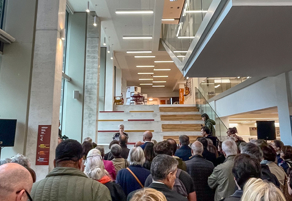 Jeudi 23 octobre, en présence de Jean-René Etchegaray, maire de Bayonne, fut inaugurée la Médiathèque centrale, au terme d’un chantier de 25 mois. L’équipement réhabilité a accueilli ses premiers visiteurs dès le vendredi 24 octobre. À la suite d’un concours remporté en 2018, le projet a consisté en la réhabilitation du Bâtiment Evêché, construit au XVIIe siècle, ainsi que la reconstruction de l’aile des années 70, agrandie et dotée d’une nouvelle façade. Un nouveau parvis conçu par l’agence Christophe Gautrand & associés borde la médiathèque, créant un dialogue avec la Cathédrale Sainte Marie et replaçant l’équipement dans la ville.