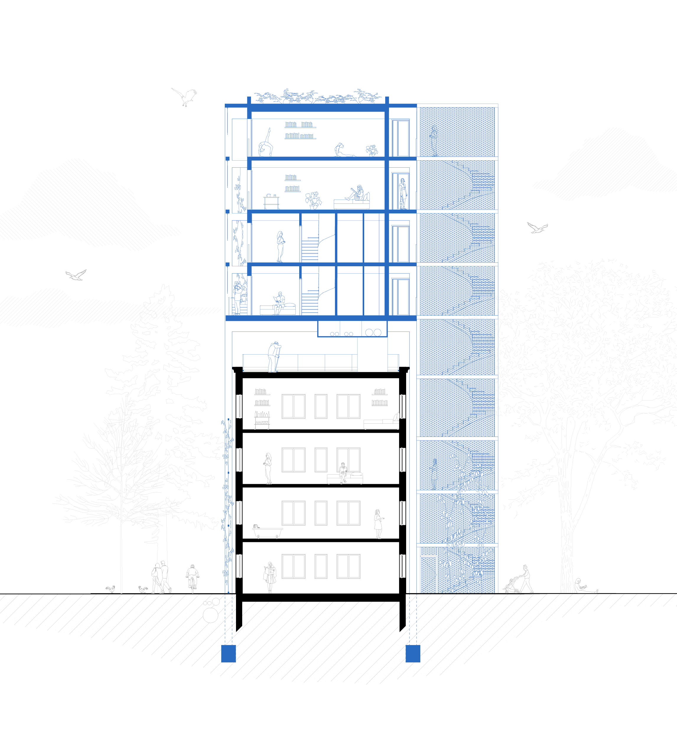 We like working with what is already there, from the micro to the macro – through rehabilitation, transformation, adding height, reusing, and recycling – to limit the anthropisation of the ground as much as possible.