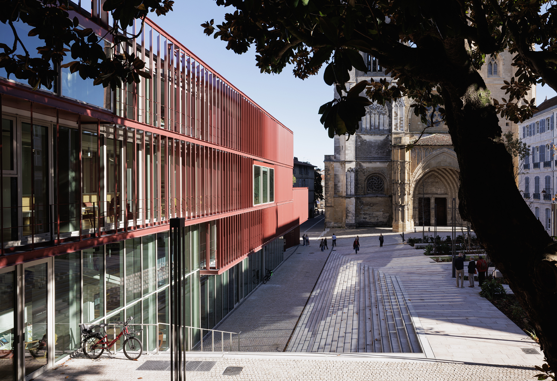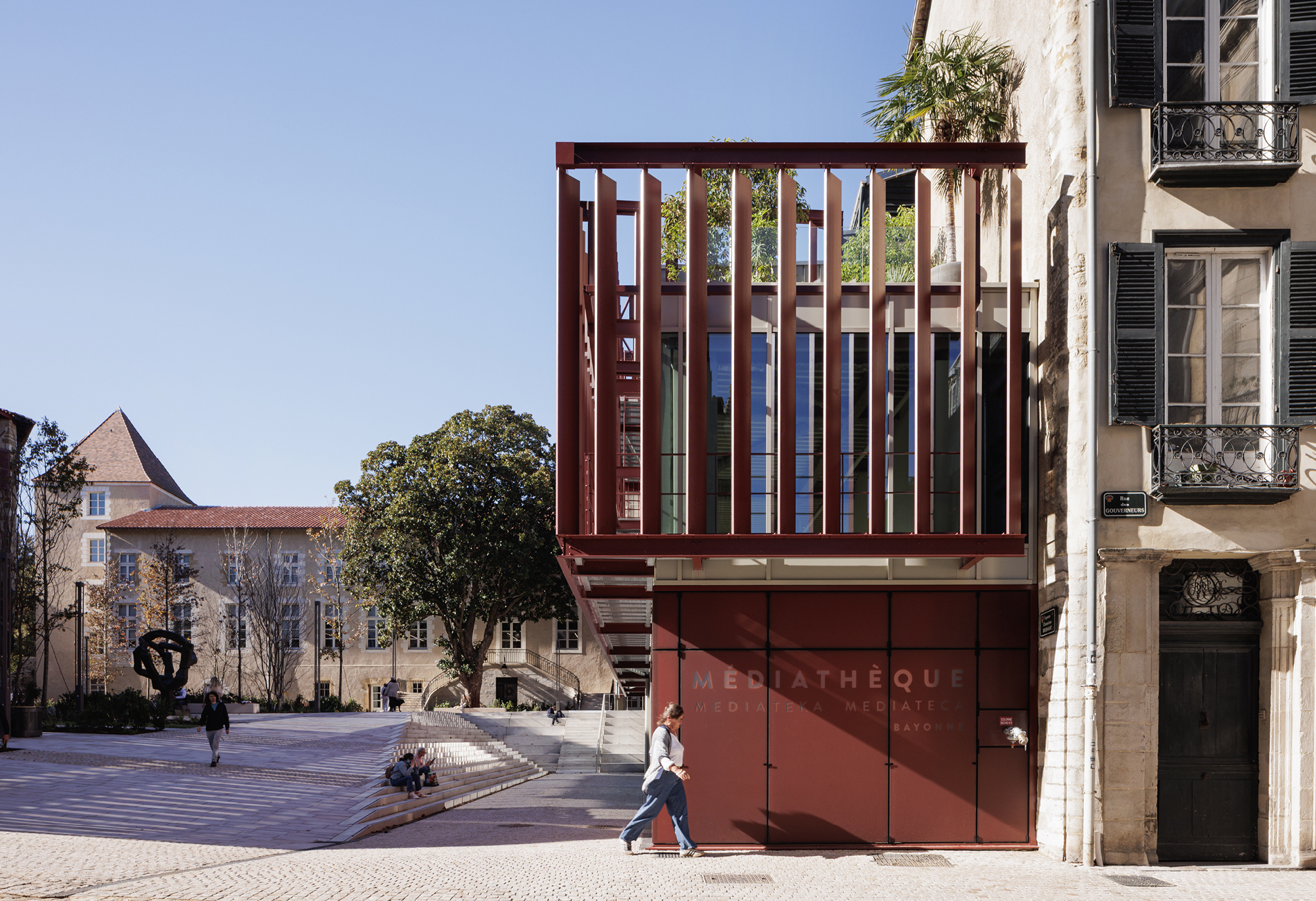 Jeudi 23 octobre, en présence de Jean-René Etchegaray, maire de Bayonne, fut inaugurée la Médiathèque centrale, au terme d’un chantier de 25 mois. L’équipement réhabilité a accueilli ses premiers visiteurs dès le vendredi 24 octobre. À la suite d’un concours remporté en 2018, le projet a consisté en la réhabilitation du Bâtiment Evêché, construit au XVIIe siècle, ainsi que la reconstruction de l’aile des années 70, agrandie et dotée d’une nouvelle façade. Un nouveau parvis conçu par l’agence Christophe Gautrand & associés borde la médiathèque, créant un dialogue avec la Cathédrale Sainte Marie et replaçant l’équipement dans la ville.